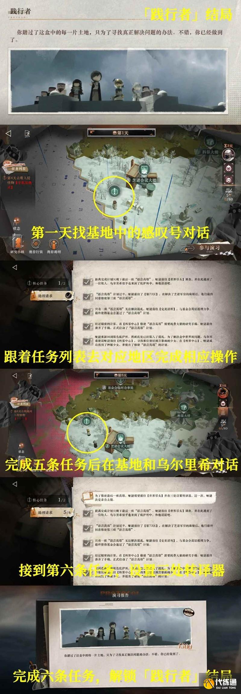 踐行者——在探索過(guò)程中先完成六條任務(wù)列表中的任務(wù),再打完最終boss(圖有具體流程)