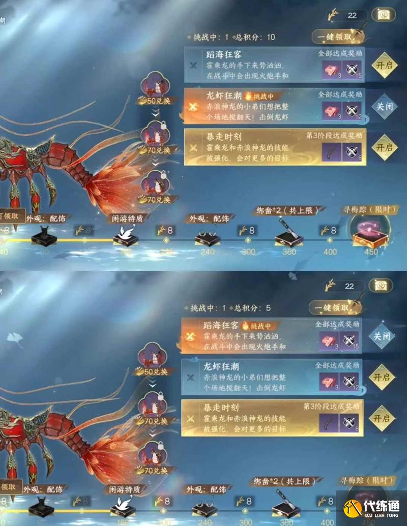 2.選擇普通難度淺海,對話速小問,分別開啟蹈??窨?,龍蝦狂潮,需要兩次完成,獲得羅彩匣*6
