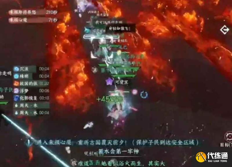 跳過去或者走得太快容易讓子民碰到火圈掉血,奶媽這里注意抬好子民血量,只要穩穩走過去保證五個子民存活即可進入三階段。
