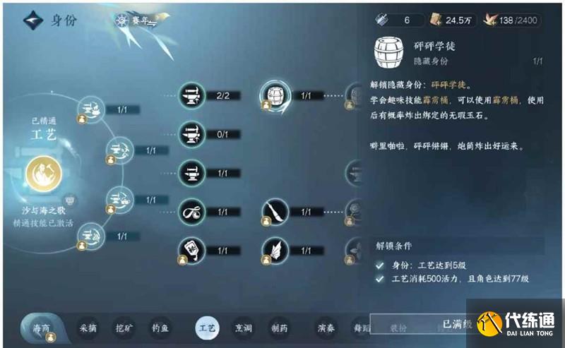 1.前置:解鎖身份·工藝隱藏身份:砰砰學徒,學會趣味技能“霹靂桶”