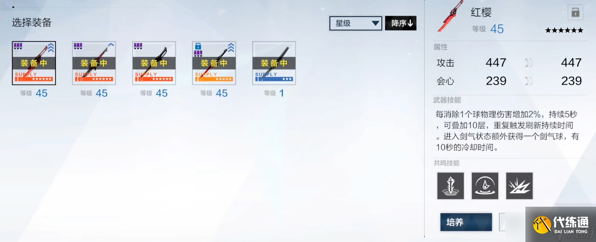 建議先把2號槽的核心被動洗出來,再慢慢優(yōu)化1號槽的攻擊詞條。武器共鳴材料比較珍貴,最好確保紅櫻升到五星后再投入。平時可以多刷巴頓意識本,既能湊套裝又能攢共鳴材料。如果暫時沒有紅櫻,天狼星也能湊合用,但記得優(yōu)先共鳴死點計時來彌補信號球缺口。