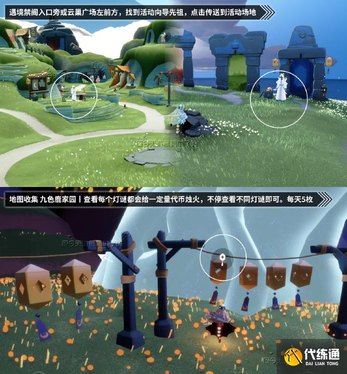 在云巢活動公告板/遇境禁閣入口旁找先祖,可直接前往活動地圖