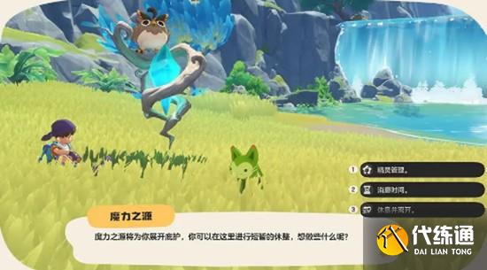 大陸上分布著多種發(fā)光點(diǎn),靠近后可觸發(fā)不同事件。藍(lán)色發(fā)光點(diǎn)通常為資源采集點(diǎn),翻找后可獲得技能石、煉金材料或食用補(bǔ)給品,用于精靈成長和狀態(tài)恢復(fù)。粉色發(fā)光點(diǎn)則與音樂系統(tǒng)相關(guān),觸碰后會(huì)播放經(jīng)典旋律,并逐步解鎖魔法樂章圖譜。這些樂章不僅能兌換限定裝飾,還能在特定地點(diǎn)召喚隱藏精靈,是收集黨不可錯(cuò)過的要素。