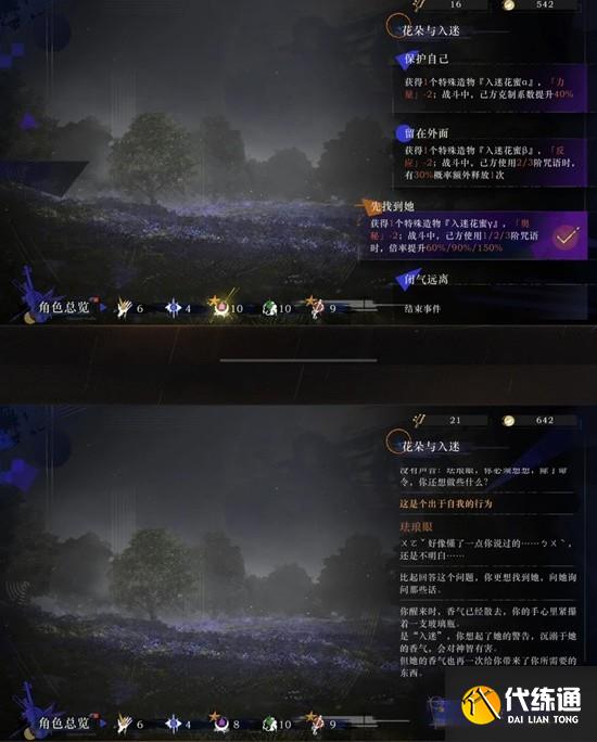 攢兩個(第二個在休憩地里選安撫),“感知”屬性高的話應該是會自動出現,選去找她的話結局二里面也是這個花蜜的“她”會來領人,所以大概率是一定要拿到的