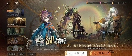 重返未來:1999玩家可以在指定的角色范圍內自主選擇并鎖定3位6星角色作為當期【湖的饋贈】征集的定向邀請角色。當在【湖的饋贈】征集中獲取6星角色時,100%的概率為玩家鎖定的6星角色之一。每個鎖定的6星角色的獲取概率均等。那么此次卡池應該抽取什么角色呢?小編為你準備了一份攻略,一起來看看吧~ 本 閱讀全文...