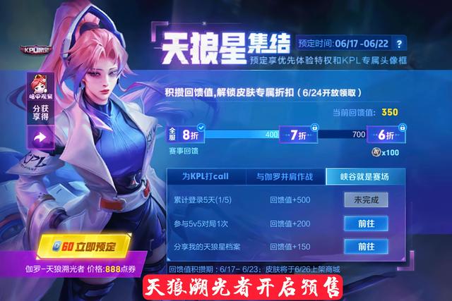 最近這一段時間王者榮耀新賽季馬上就要更新了,所以會帶來很多的新內容,尤其是在今天的時候,又有一款新皮膚上架到王者榮耀中,她就是天狼星小隊的最后一位成員,也是伽羅的一款新皮膚,名字叫做天狼溯光者,在這款皮膚公布之后,也迎來了很多玩家的關注,而在今天這款皮膚終于來了,目前預售開啟不到一天的時間,預 閱讀全文...