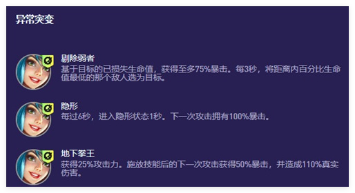 云頂之弈s13大頭異變選什么厲害?云頂之弈s13大頭異變玩什么好?云頂之弈s13版本的話很多人都想要玩下大頭作為主C的玩法了呢,那么就可以嘗試下這個連殺的異變了,需要看下選擇的建議了,合理地選擇是可以提升下這個角色的實(shí)力的,那么不會的來看看具體的分析吧!s13大頭異變選擇分析主選:連殺次選:魔法專家 閱讀全文...