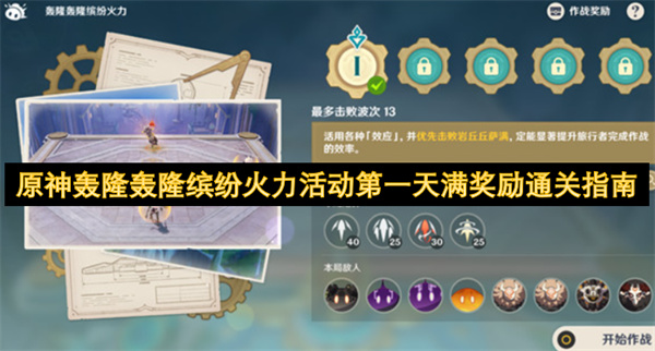 《原神》5.7下半開啟活動“轟隆轟隆繽紛火力”,玩家需操作火力炮臺,擊敗12波怪物。每關擊敗前4波即可獲取80原石,小編將帶來原神轟隆轟隆繽紛火力活動第一天滿獎勵通關指南,希望能夠幫助到各位。 原神轟隆轟隆繽紛火力活動第一天滿獎勵通關指南 一、第一天通關要點 可用炮彈類型:普通彈、三向彈、火焰彈 閱讀全文...
