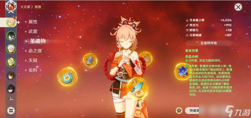 觸發一次幽谷祝祀所需要的期望攻擊次數為一點九左右,如果攻擊間隔大于零點二秒的話,而且普攻次數足夠多的情況下,四件套所帶來的增益跟每兩次普攻增加百分之七十的倍率接近。至于能給角色帶來多少傷害提升,需要根據角色普攻倍率和佩戴的武器來定,因為角色普攻越低余響套的收益越大。比如說宵宮攜帶該套裝,宵宮一輪平A有七箭,其中一二箭的間隔大約是零點一秒,四五箭的間隔為零點二五秒,因此對于余響套來說宵宮的有效普攻次數實際為六次,也就是能觸發余響套三次。 雙十天賦的宵宮一輪平A的倍率為百分之七百二十多乘E技能提升的增益,總倍率為百分之一千兩百多,余響四件套提供的期望倍率為三乘百分之七十,提升率為百分之十七。宵宮攜帶追憶套的情況下,追憶套提供百分之五十的普攻增傷區,在佩戴精五弓藏的情況下,提升率為百分之二十左右,差距在百分之三點幾,余響套需要多兩條雙暴詞綴才能追平差距。在其它武器提供的增傷區低于精五弓藏百分之八十的情況下,追憶四件套提供的增益反而會更大。 比如說佩戴精一弓藏或者飛雷,由于這兩把武器只提供百分之四十的增傷,追憶套屬性的增益上升到了百分之二十五,因此對宵宮來說余響套對比追憶的優勢就只有不扣除能量。最適合余響套的還是神里綾人,他開啟戰技后的瞬水劍是視為普攻的能觸發余響套,戰技的倍率吃生命值加成,零命十級戰技將生命倍率折合成攻擊倍率的話,整體每刀倍率為百分之一百六十多,余響套的提升率為百分之二十一。"> 來歆余響套裝主要針對角色普攻提供增益,定位和追憶套、水套和角斗套重合,余響四件套有兩個效果,一個是普攻命中敵人時有百分之三十多的概率觸發幽谷祝祀,普攻沒有觸發時概率提升為百分之二十,零點二秒內最多判定一次是否觸發。二是觸發幽谷祝祀后普攻造成的傷害提升,提升數值為自身攻擊力的百分之七十,這個效果將在 閱讀全文...