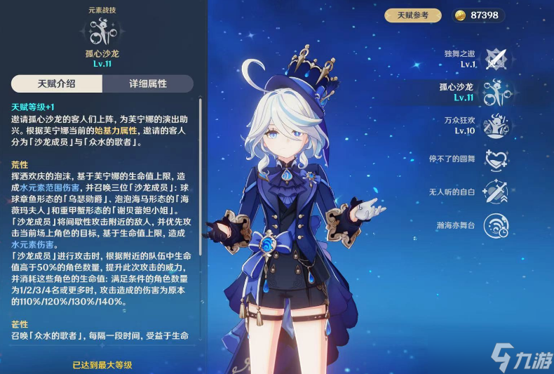 這一特質可以很好的用來破楓丹部分荒芒屬性盾的怪物。并且當芙寧娜處于黑芙狀態下,使用元素戰技會召喚出來三只召喚物,在一定時間內持續攻擊敵方,同時會消耗全隊的血量來增加造成的傷害。而在白芙狀態下,使用元素戰技則會召喚出一個持續對前臺角色治療的召喚物。并且她的元素戰技有一個很好的功能,可以增加玩家在大世界的體驗,無論是處于黑芙還是白芙狀態,只要使用元素戰技就能在水上走。 而且持續的時間比cd轉好的時間更長,也就意味著,只要元素戰技好了就按,能夠實現持續不斷地在水上奔走。另外,芙寧娜的元素爆發擁有增傷能力,根據一定時間內隊內角色血量的變動來提供增傷。根據這一特性,芙寧娜的元素戰技會扣血,滿足血量變動,但血量扣到一般就不會再扣了,所以就需要有全體回血的角色來幫助回血讓血量變動,同時芙寧娜的元素戰技又能繼續扣血了,進一步疊加增傷。 "> 芙寧娜是一位擁有較強輔助能力的副C角色,她的技能相比較于其他角色來說更加特殊,擁有兩種形態,可以從外觀上看出來,以外觀的不同被具體分為黑芙和白芙。芙寧娜的默認形態是黑芙,把芙寧娜調整到大世界所用的配對當中后才能夠切換形態。黑芙和白芙形態下,芙寧娜的元素戰技和攻擊所產生的效果都不同。處于不同形態 閱讀全文...