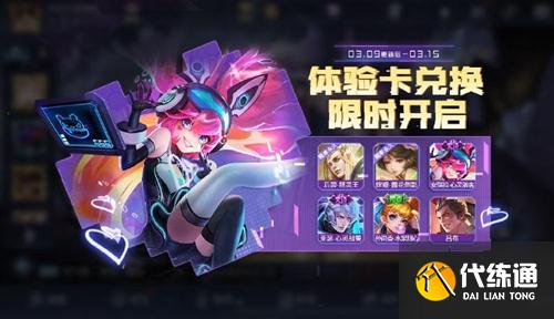 活動(dòng)時(shí)間:3月9日更新后-3月15日23:59體驗(yàn)卡可用于兌換情人節(jié)專(zhuān)場(chǎng)的熱門(mén)皮膚體驗(yàn)卡,熱門(mén)英雄體驗(yàn)卡、禮包(有機(jī)會(huì)開(kāi)出永久皮膚后羿-精靈王,嫦娥-露花倒影)