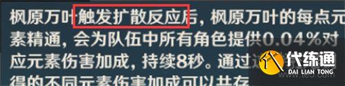 總而言之呢,萬葉的大招還是根據固有天賦的擴散反應來進行增傷的,所以大家盡量保證在大招之前讓地方附著上元素,不然染色其他顏色的會就不容易擴散到了。