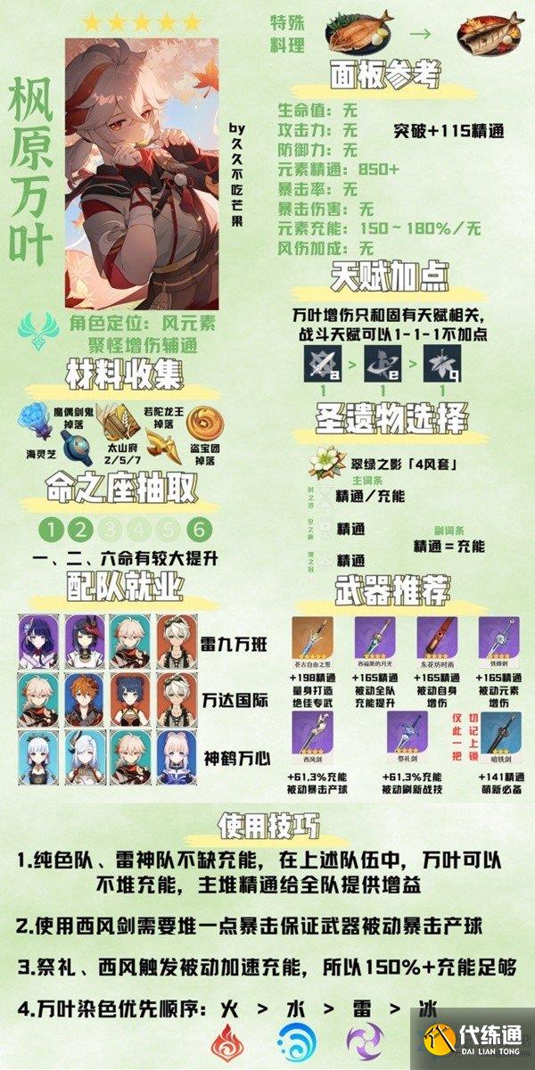 萬葉的增傷只和固有天賦相關,自身主堆精通和充能,所以傷害更多是擴散傷害,只當輔助的話,技能可以完全不點,真愛黨隨意