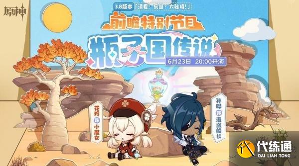 《原神》3.8版本「清夏!樂園?大秘境!」前瞻特別節(jié)目——「瓶子國傳說」將于6月23日(本周五)晚20:00正式開演。