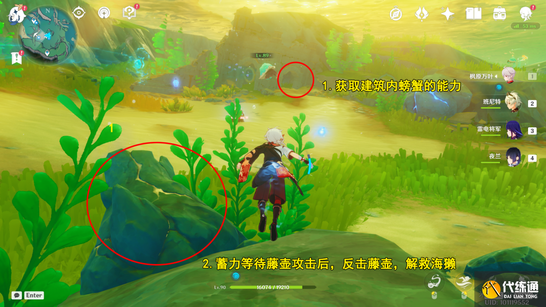 2、到達(dá)之后需要玩家獲取建筑內(nèi)螃蟹的能力,然后玩家需使用技能反擊藤壺將海獺解救出來(lái),之后即可完成此任務(wù)并獲得寶箱。