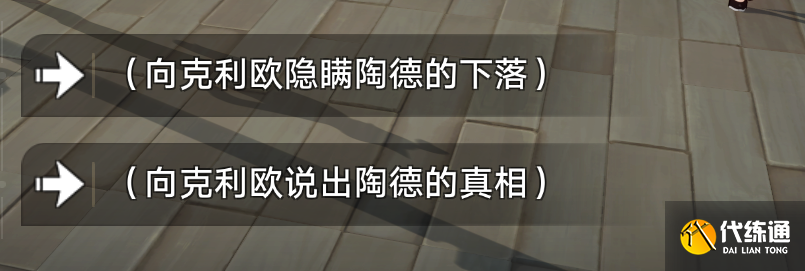2,之后選擇【向克利歐隱瞞陶德的下落】,可以獲得成就岔路新生