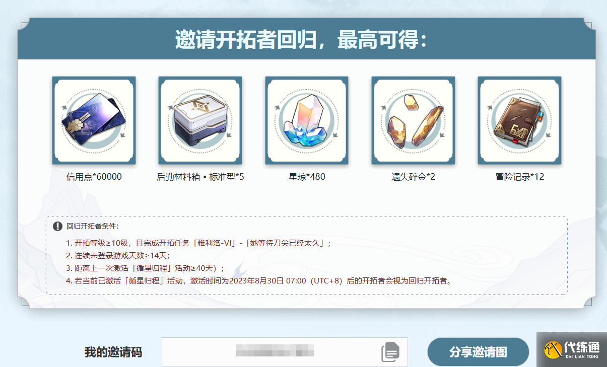 首先玩家需要滿足回歸條件,才能夠填寫別人的邀請碼。
