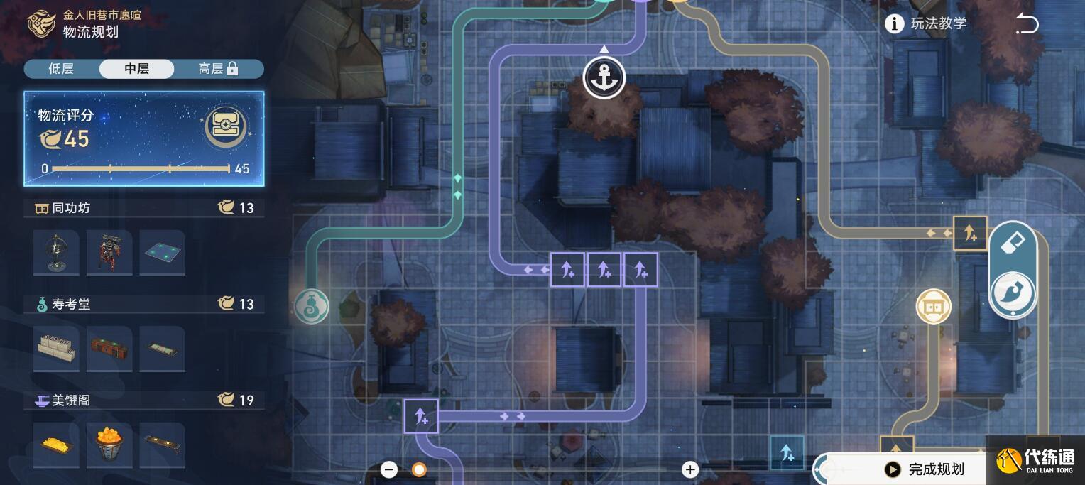 金人巷經營期間,可以在「物流規(guī)劃」中規(guī)劃航線,通過達成一定的物流評分,獲取對應獎勵。
