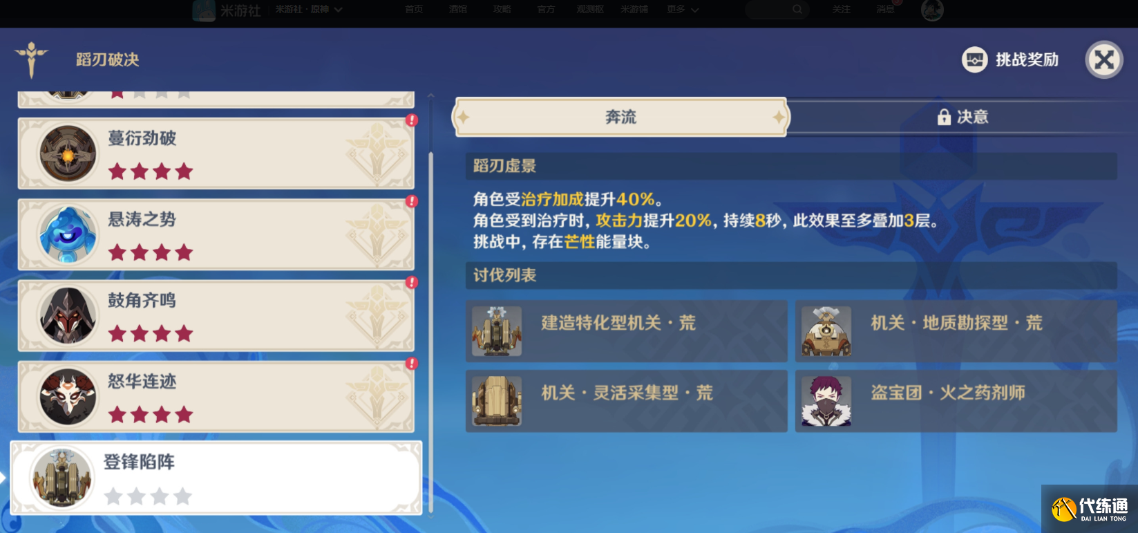 注意:buff是角色治療加成提升40%,角色受到治療時,攻擊力提升20%,持*8*,此效果至多疊加3層,挑戰中,存在芒性能量塊。