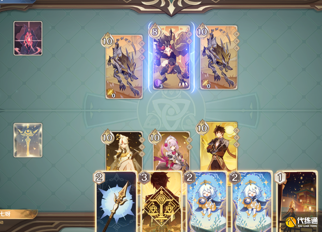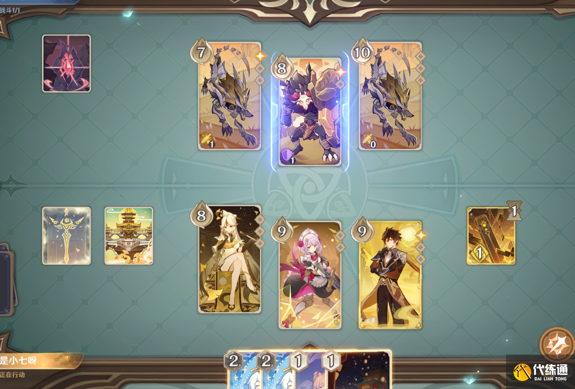 行動牌參考:推薦帶雙巖共鳴牌+巖與契約,其它的帶對應的天賦牌和一些能加萬能骰子牌(例如:派蒙、最好的伙伴)來優化手感。