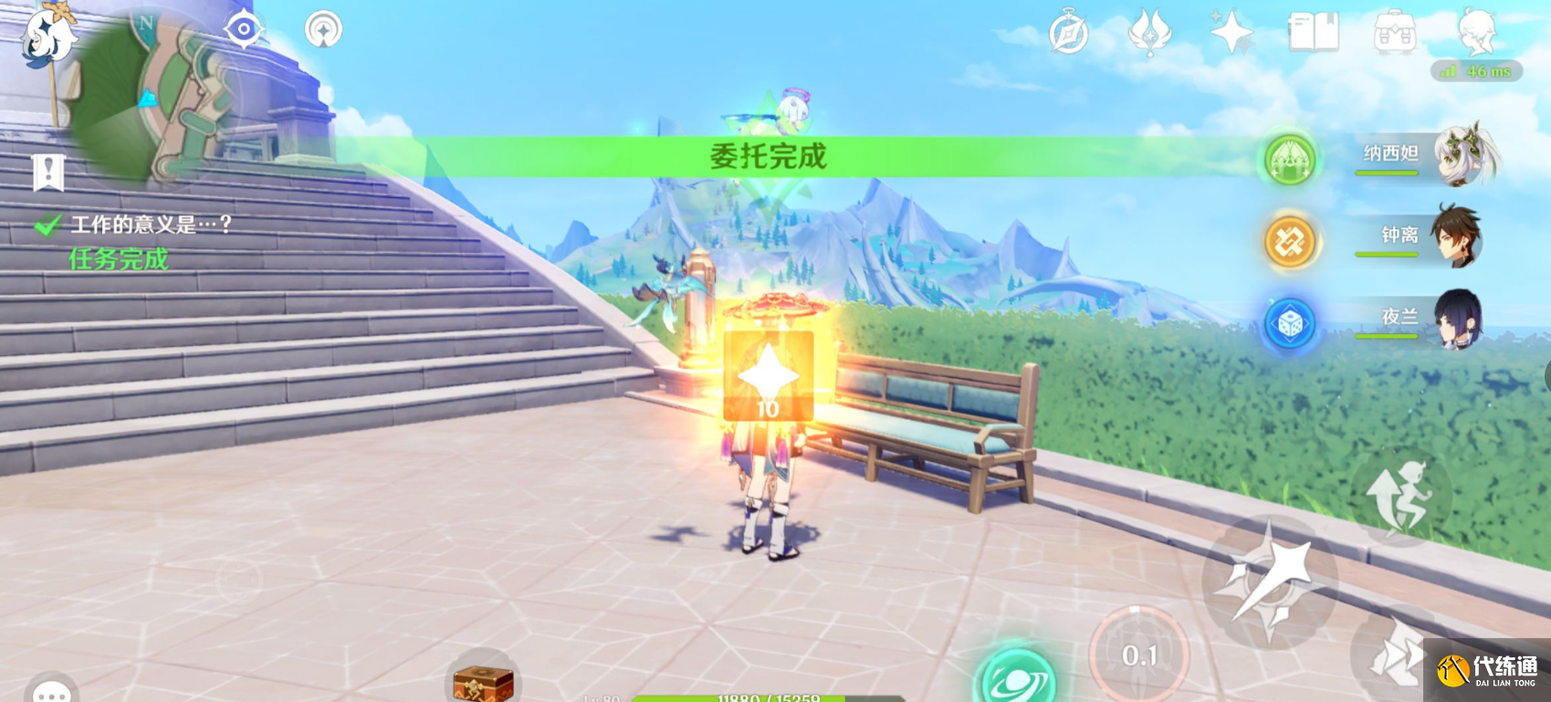 對(duì)話結(jié)束,日常委托任務(wù)——【工作的意義】完成,獎(jiǎng)勵(lì)10原石