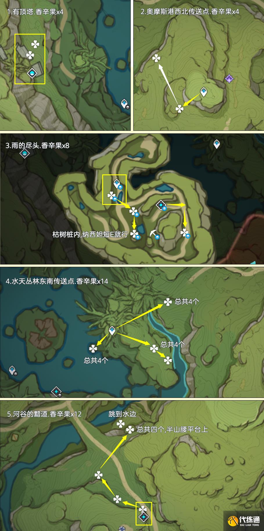 該路線推薦玩家:缺少香辛果的玩家,由于須彌的料理大部分都需要香辛料,需求量很高
