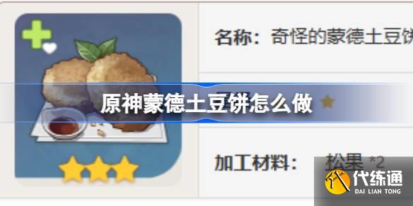 原神有很多食物可以制作,可以為旅行者提供一些生命回復,體力恢復以及其他增益效果,其中的蒙德土豆餅大家知道怎么做嗎?下面為大家帶來的具體內容,感興趣的玩家們千萬不要錯過哦!