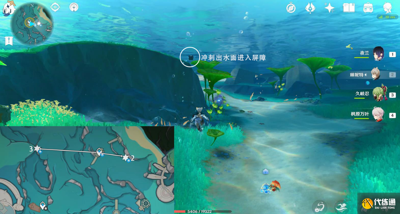 傳送大楓丹湖中間錨點,往地圖的東北方向游