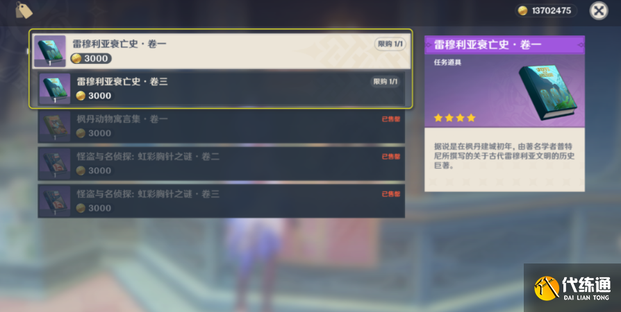 原神雷穆利亞衰亡史卷一卷三怎么獲得 原神雷穆利亞衰亡史卷一卷三獲取攻略