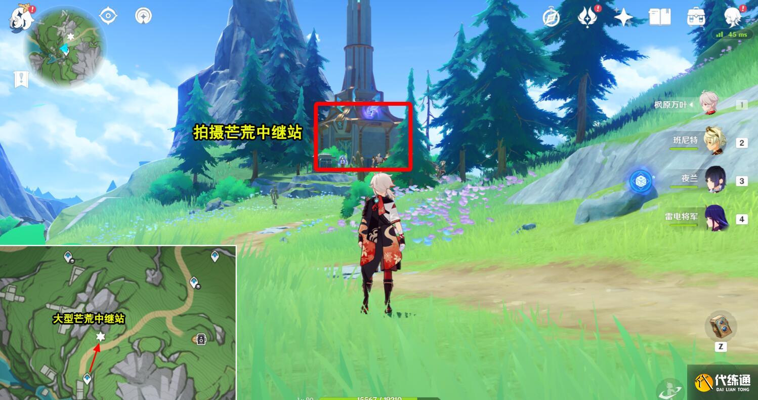 傳送至蒼晶區下圖傳送點,面向東北方向,按Z拍攝大型芒荒中繼站,拍攝下面部位才有白圈提示。