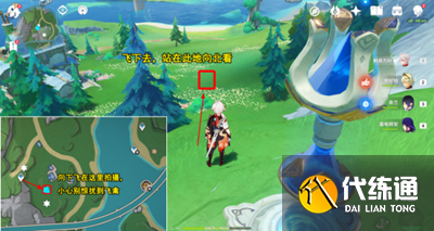 2、從你的傳送點往東南方,按照下圖所示的方向飛行,小心別驚動那些飛禽。