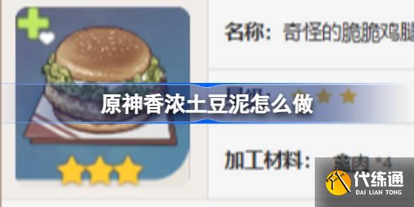 原神有很多食物可以制作,可以為旅行者提供一些生命回復,體力恢復以及其他增益效果,其中的香濃土豆泥大家知道怎么做嗎?下面為大家帶來的具體內容,感興趣的玩家們千萬不要錯過哦!