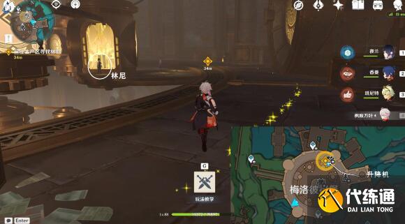升降梯到頂后,按逆時針繞梅洛彼得堡,與林尼對話