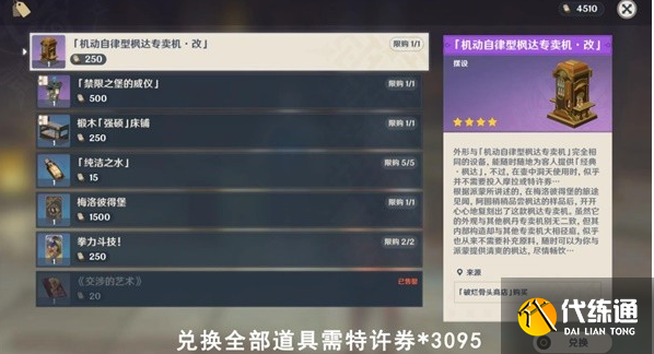 5分鐘/兌換破爛骨頭商店/特許食堂全部道具;