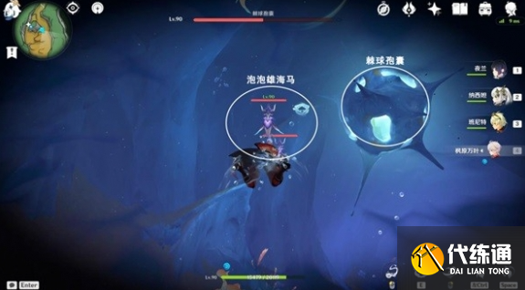 使用異色水母能力,擊敗泡泡雄海馬+2小海馬