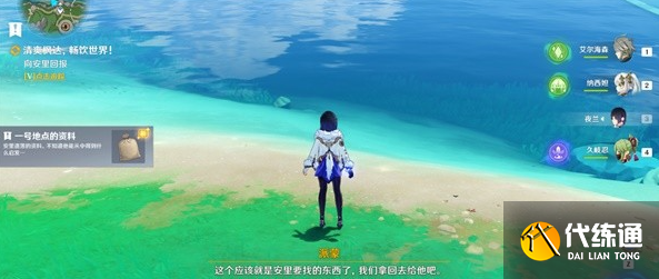 來到新楓丹科學院,與安里對話后,先去幫他取回資料;順帶一提和旁邊的楓達飲料機交互領取1瓶楓達后,打開背包的任務欄點擊使用;