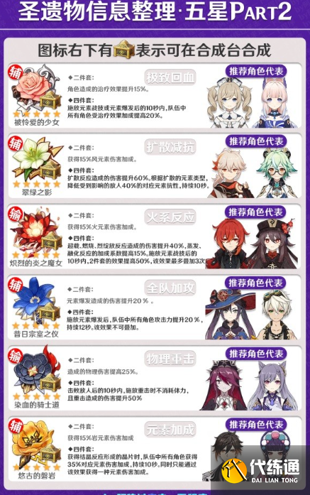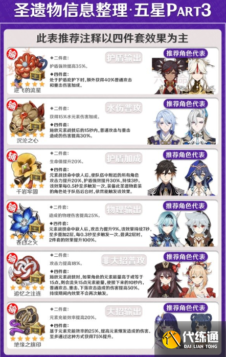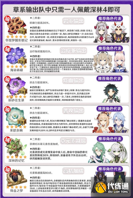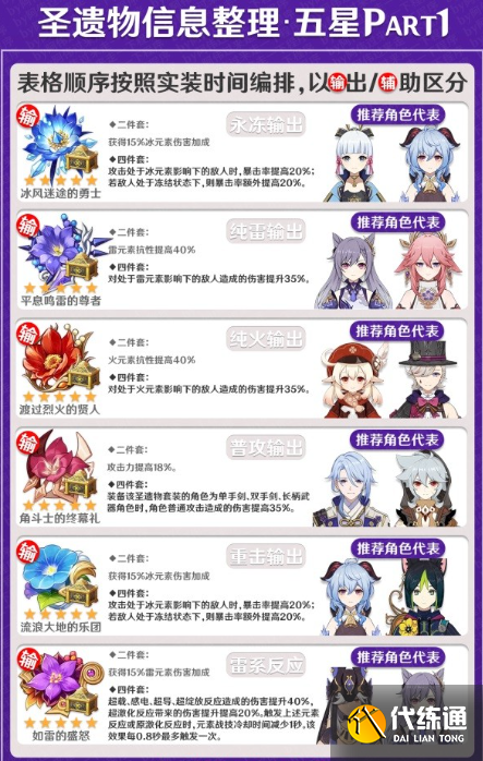 表內圖標左上角分別標注了該圣遺物四件套適合的定位,其中我將回血與加傷統一為輔助功能。