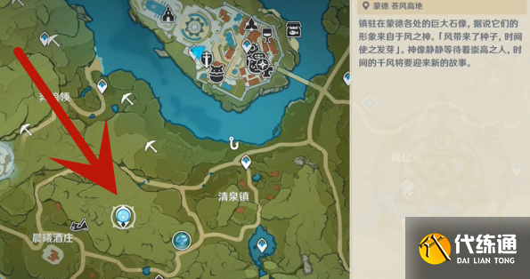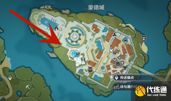 1、玩家首先前往蒙德城圖中標(biāo)記的傳送點。