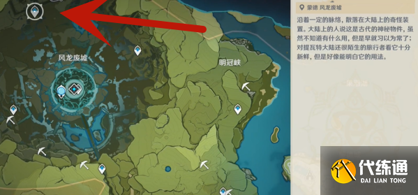 9、最后來到風龍廢墟左上角錨點位置,到達后往小地圖東北方向前進,最后在廢墟位置向上爬。