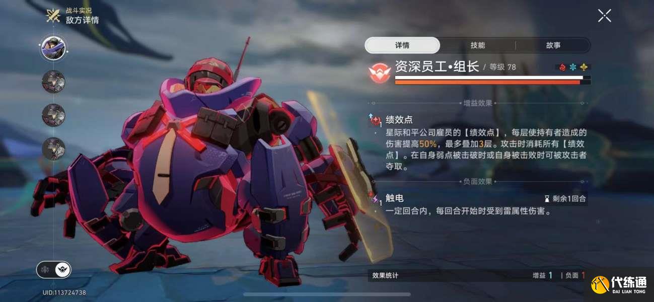 但老實說,這小蟲子血量也厚得離譜(2+2希兒一個戰技砍不死),建議還是用群體攻擊的主C,順便帶個佩拉,大招減抗同時看能否順利觸發buff的離神效果。
