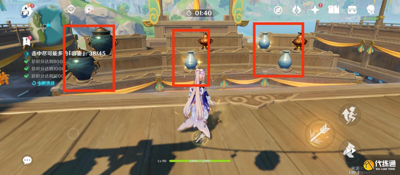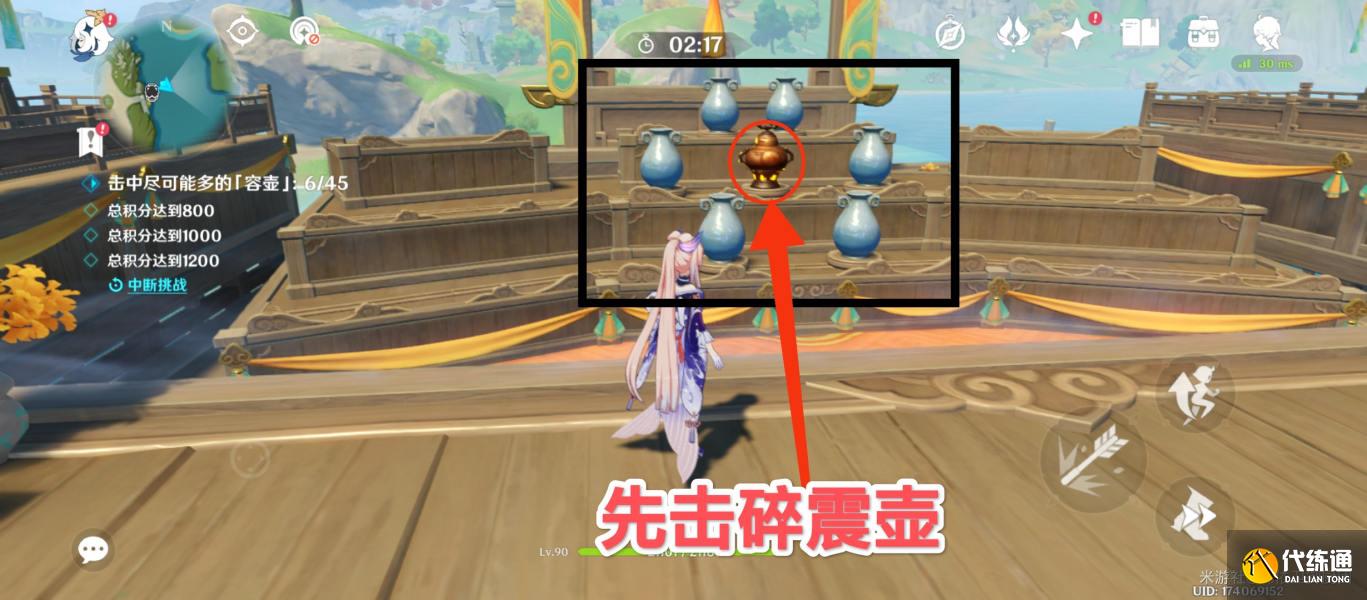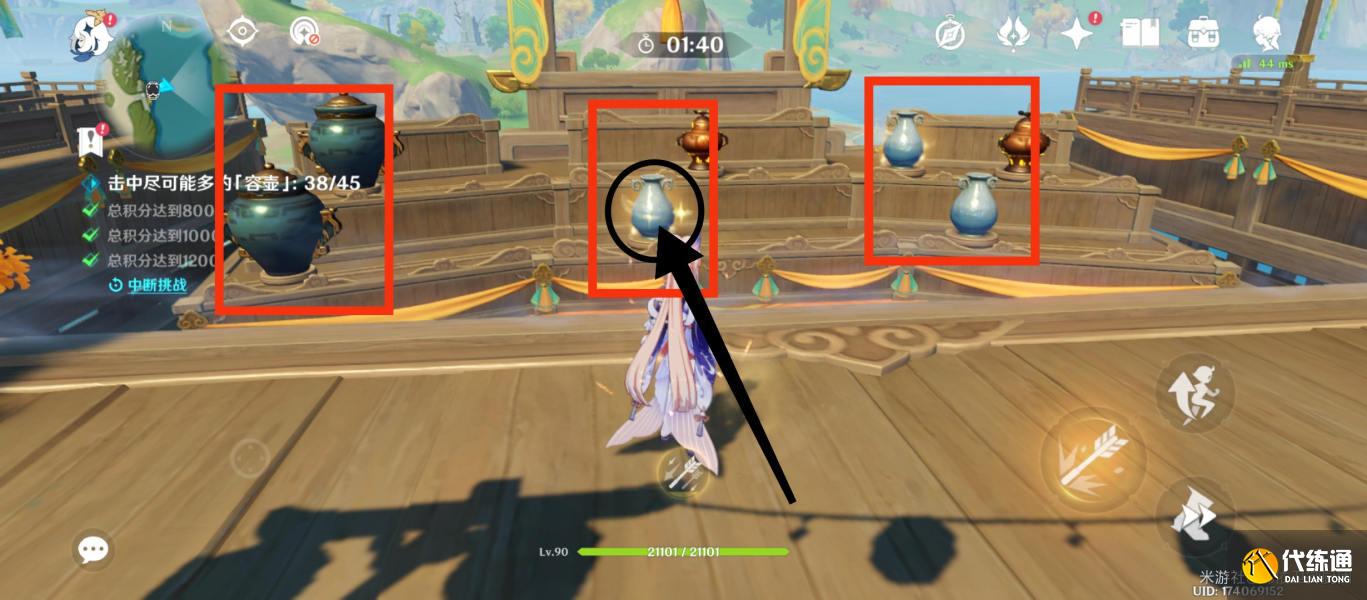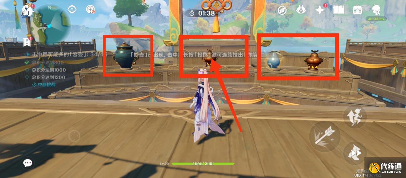 然后長按投擲鍵瞄準左邊部分的吞壺擊碎它們,注意多次擊中吞壺后方可徹底擊碎,擊碎后從左往右依次擊碎剩下的容壺,然后就挑戰(zhàn)成功了