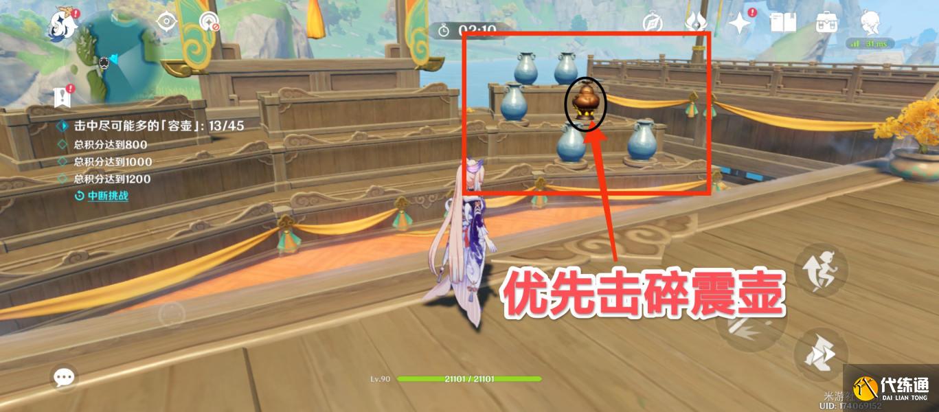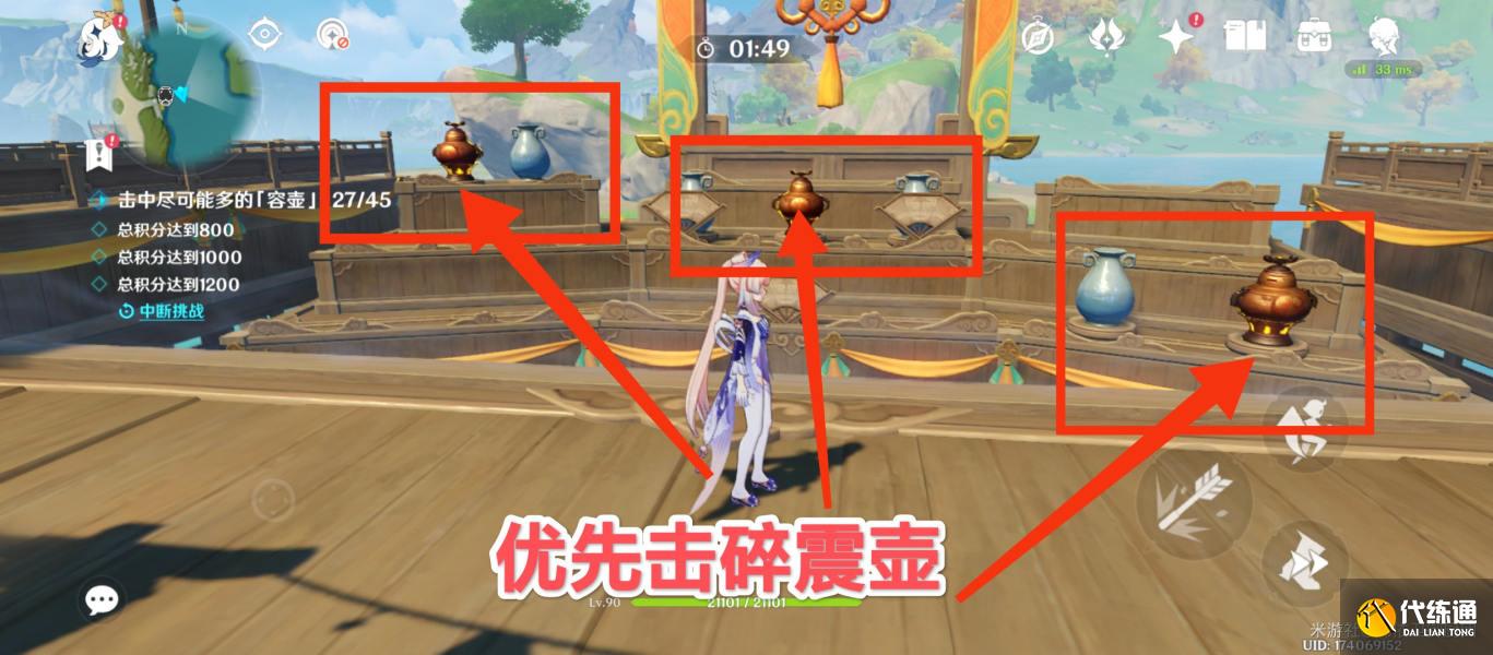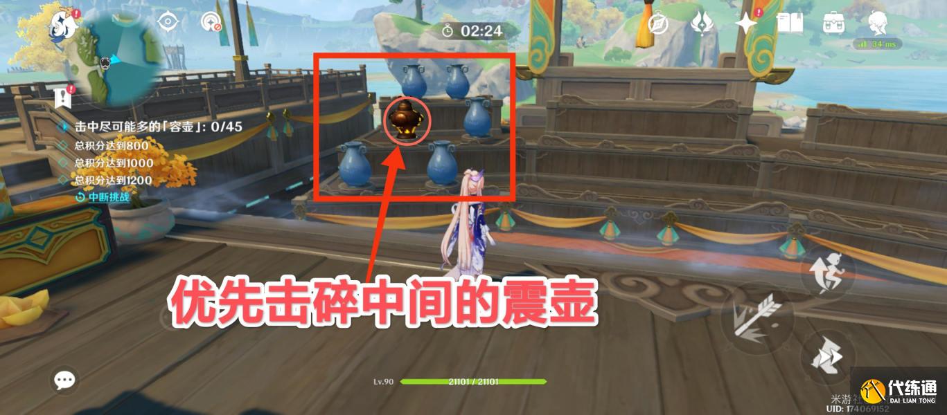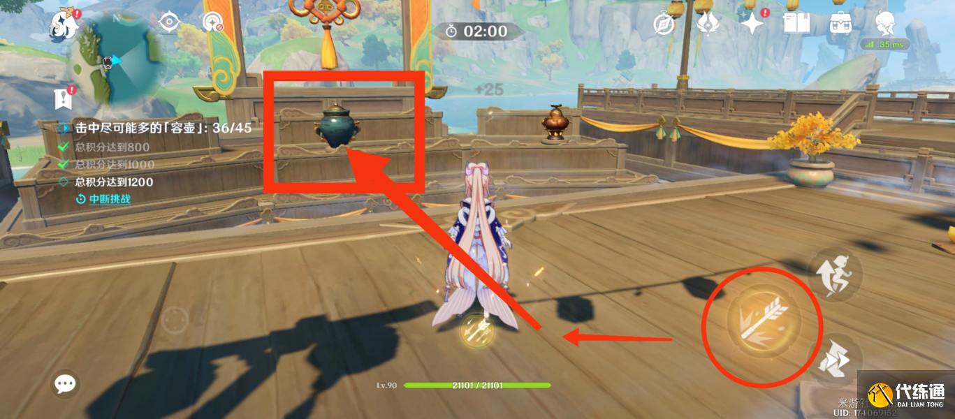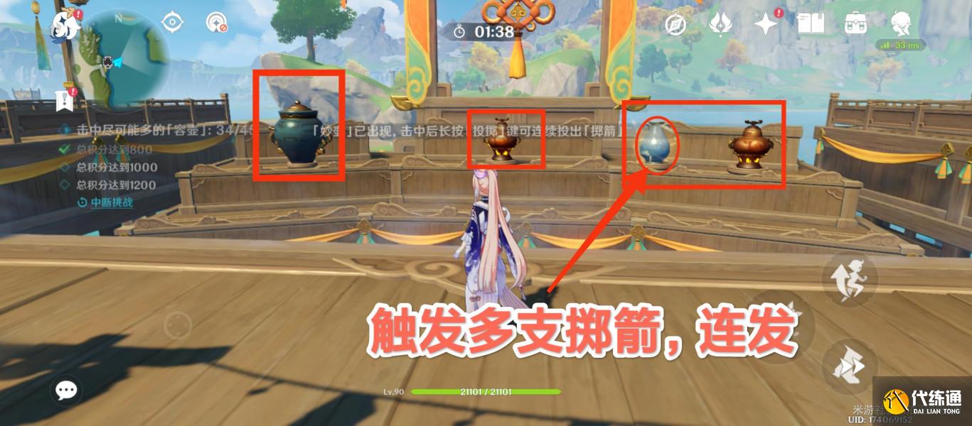 然后長按投擲鍵瞄準左邊部分的吞壺擊碎它們,注意多次擊中吞壺后方可徹底擊碎,擊碎后從左往右依次擊碎剩下的容壺,然后就挑戰(zhàn)成功了