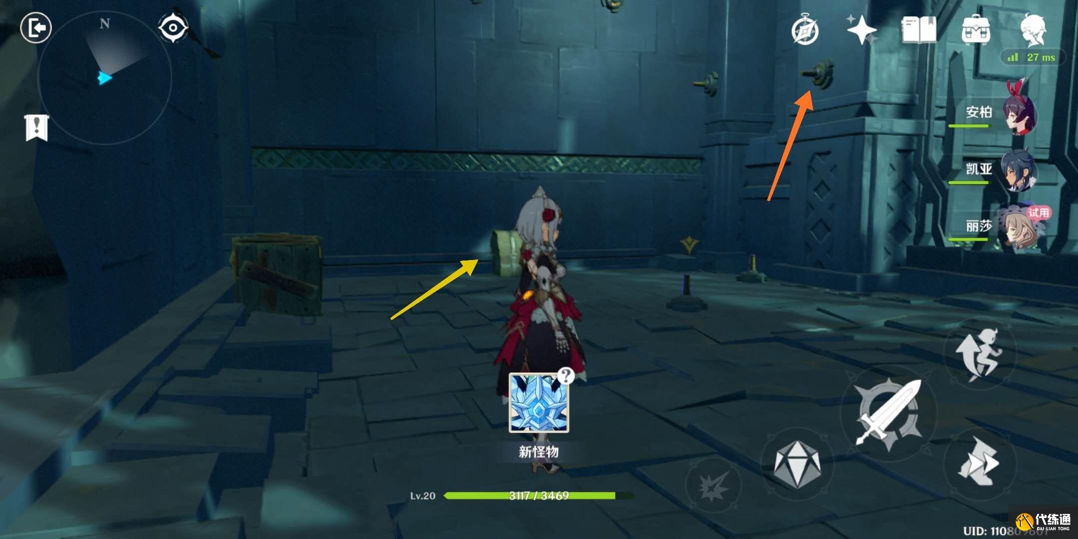 用麗莎技能打一下墻上的電流裝置,順便把旁邊的寶箱拿了。