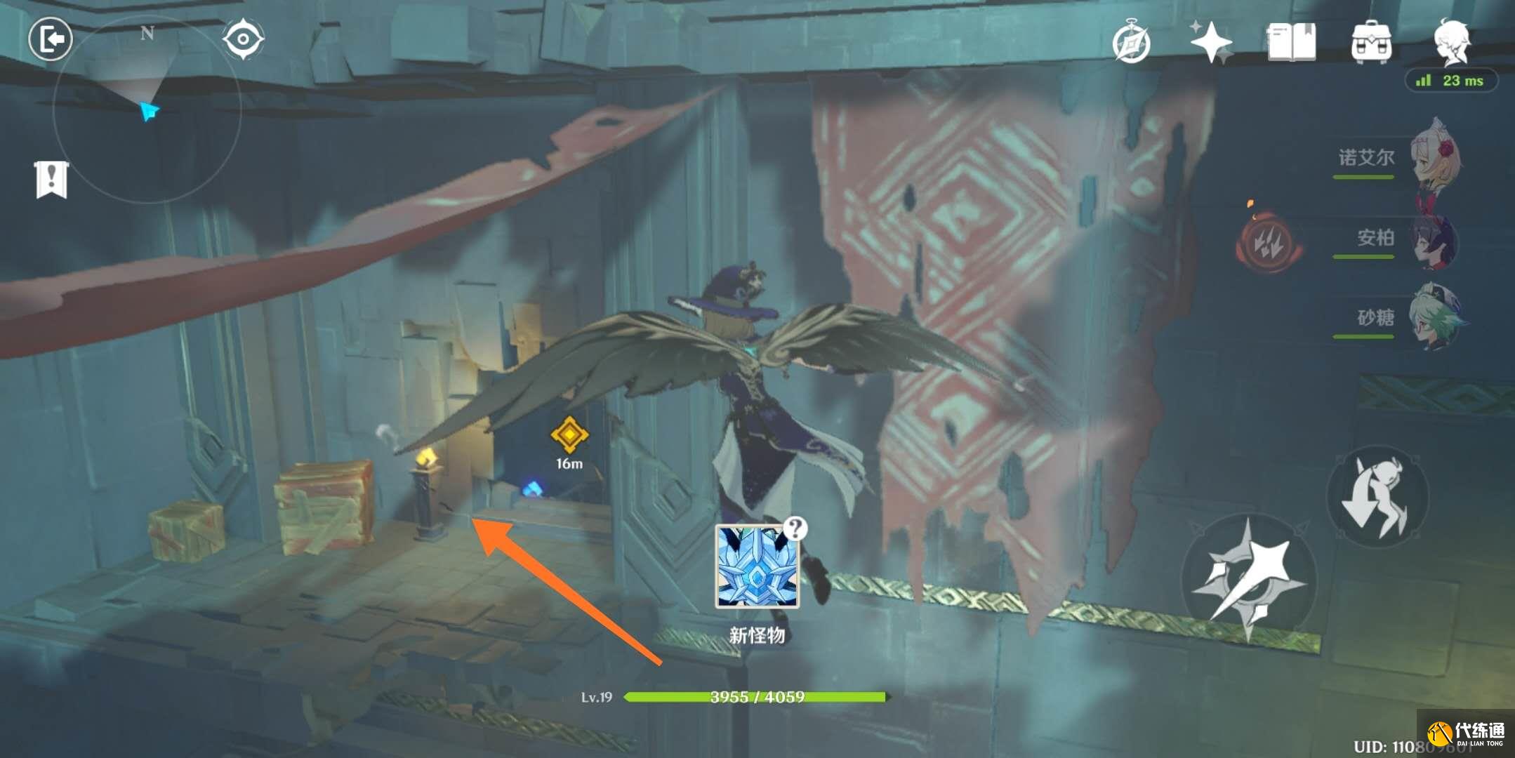 3、光點全部調查完之后,根據任務光標,來到下圖的位置,這里即是秘境的入口。