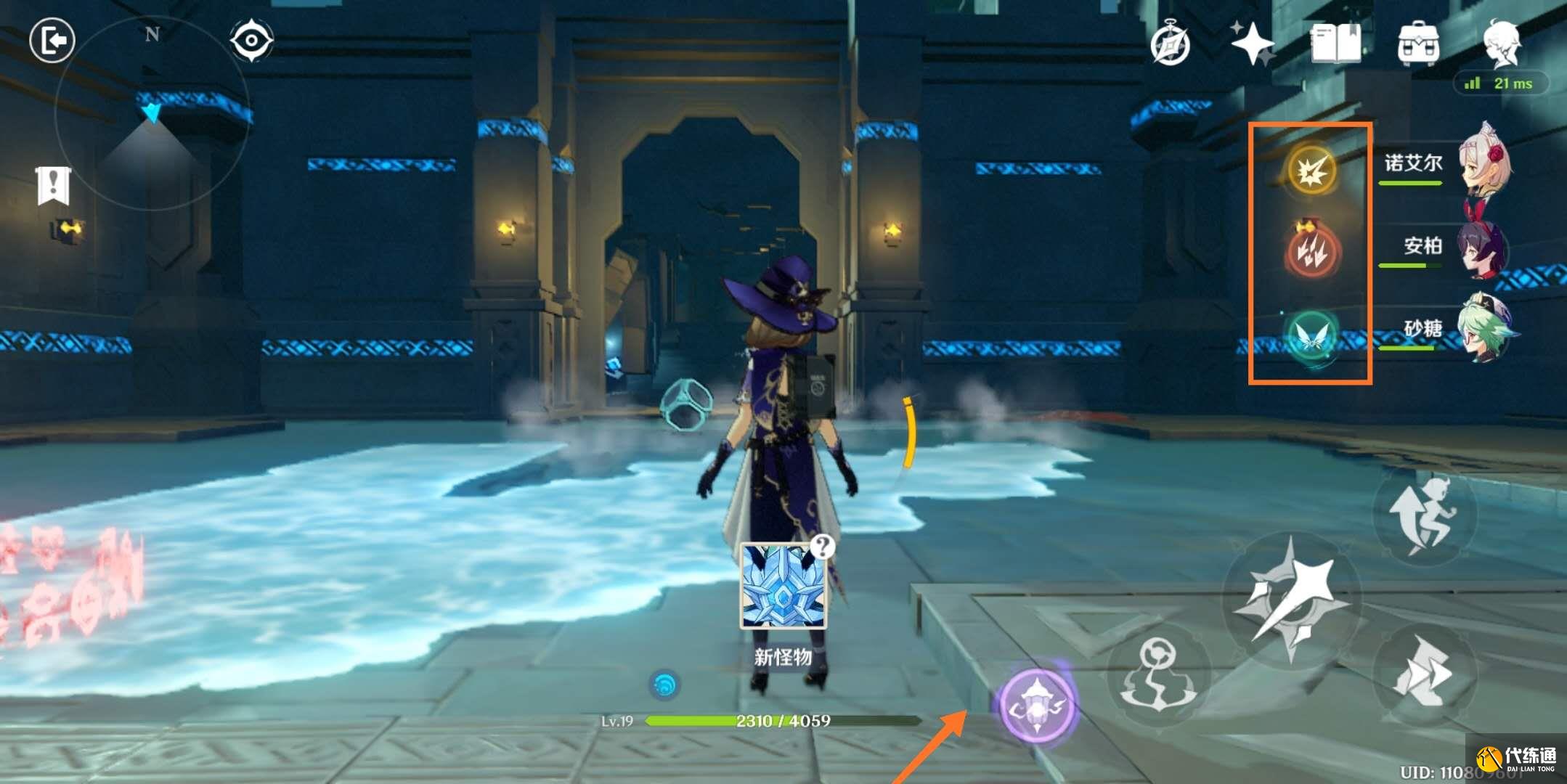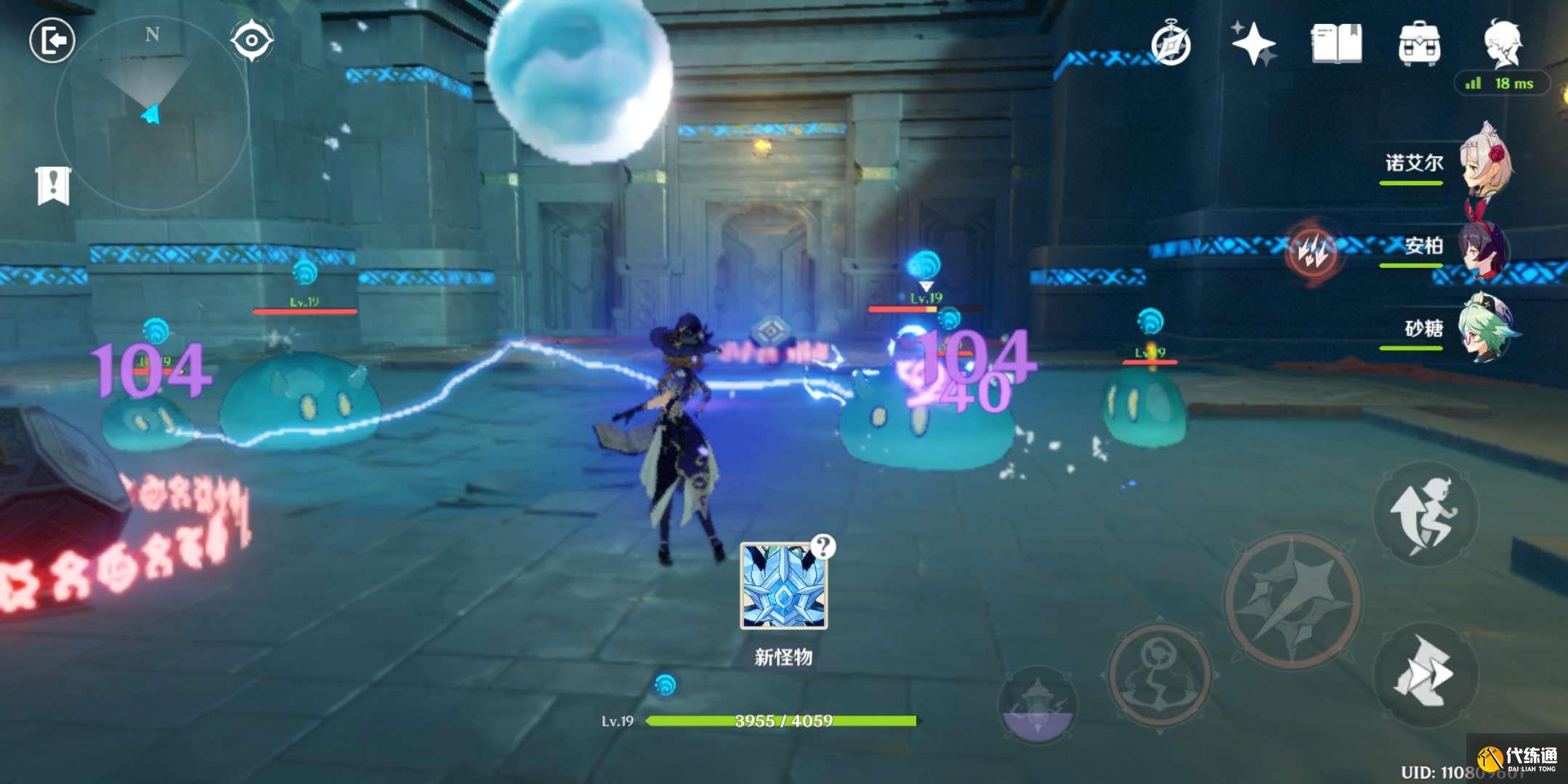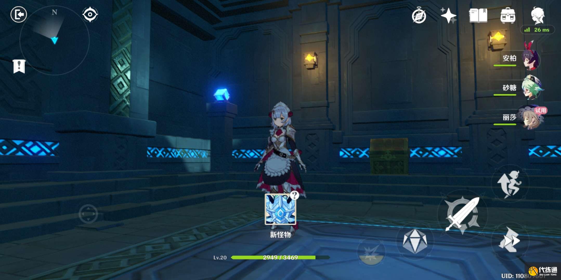 7、殺完這波之后,再按剛才那個機關,會出現一個冰深淵法師,也是限時擊殺,這個相對簡單一點,用諾艾爾砍掉它的盾或者安柏射掉它的盾,就很簡單了,注意躲避,不要讓它的冰凍到你。