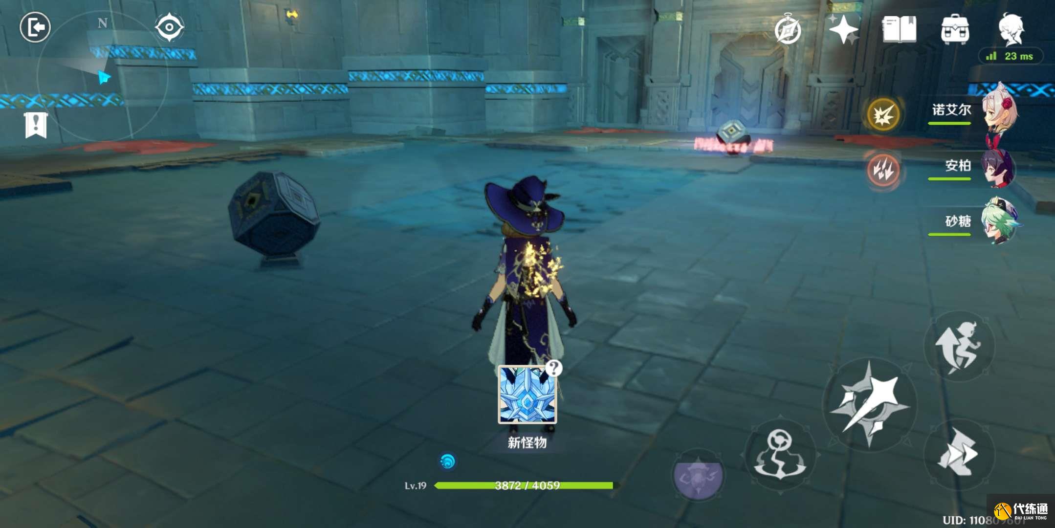 6、機關開啟是限時挑戰,要求在30秒內殺完10只怪物。建議第一波先殺幾只怪物,把每個人物的大招攢滿,小編用的諾艾爾、安柏、砂糖,攢滿大招一次過。
