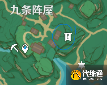 稻妻的九條陣屋,在用感嘆號標記的周圍