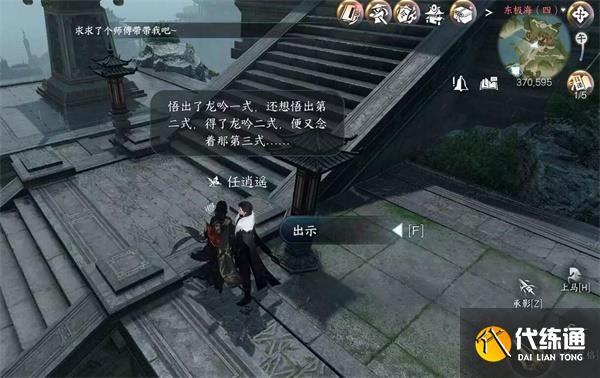 2、前往(370,595)位置找到“任逍遙”提交“竹牌”,進行對話。