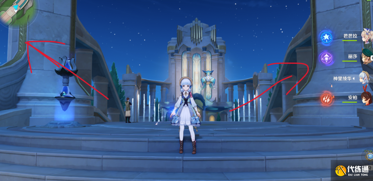 楓丹歌劇院露景泉的傳送點,在左右兩側(cè),一共12棵樹,一側(cè)各6棵樹