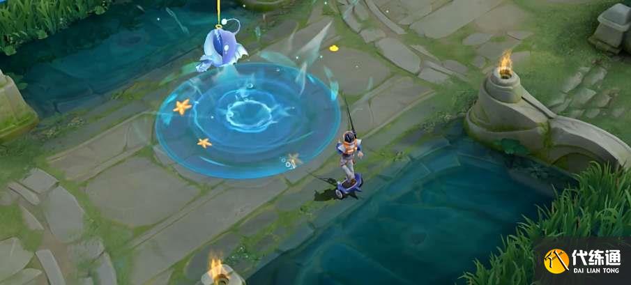 3、2技能范圍內出現海浪波紋,融入海星、貝殼、烏鴉等趣味元素。海星倒計時結束后水中將躍起魚兒咬鉤。